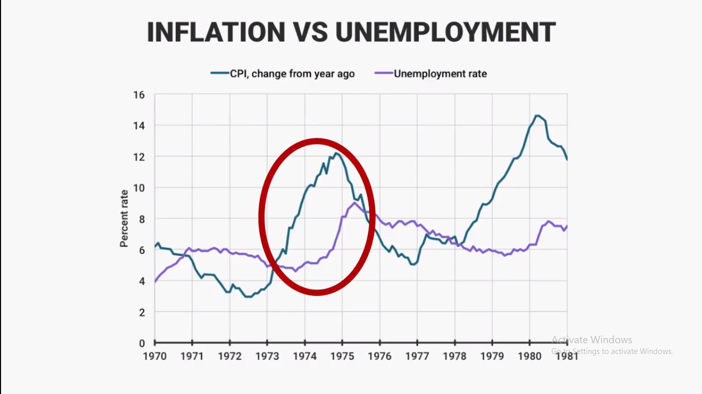 Another Keynesian thinker, AW Phillips had proposed a model that showed a correlation between unemployment and inflation. The conventional form of thinking regarding unemployment and inflation followed a model called Phillips Curve. This model essentially showed an inverse correlation between unemployment and inflation meaning that as inflation went up unemployment went down and vice-versa. But as stagflation occurred this model soon collapsed as shown in the graph below that shows the stagflation in the 1970s clearly as high unemployment and high inflation. Then the Phillips Curve struck the minds of the then policymakers to see high inflation with less unemployment and less inflation with high unemployment. Keynesian theory made the governments thought as of the Phillips curve as the fixture to their problems but as in fact stagflation completely collapsed the Phillips curve as its cure.